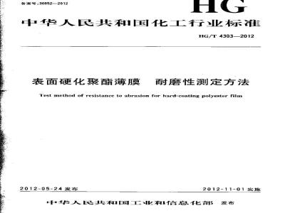 'Test nethod of resistance to abrasion for hard-coating polyester film2012-05-24发布