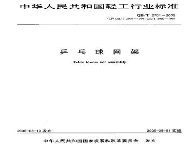本标准规定了乒乓球网架的分类、要求、试验方法、检验规则和标志、包装、运输、贮存。本标准适用于比赛、训练和健身等乒乓球运动的乒乓球网架。 QB/T 2701-2005 乒乓球网架 QB/T2701-2005 标准下载解压密码:www.bzxz.net