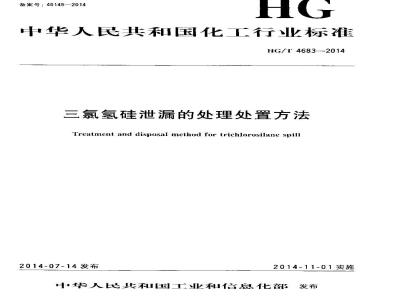 HG/T 4683-2014 三氯氢硅泄漏的处理处置方法