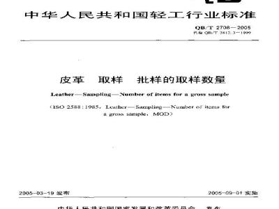 本标准规定了从商业批或生产批中抽取整张样品数量的方法。本标准适用于各种类型的皮革。 QB/T 2708-2005 皮革 取样 批样的取样数量 QB/T2708-2005 标准下载解压密码:www.bzxz.net