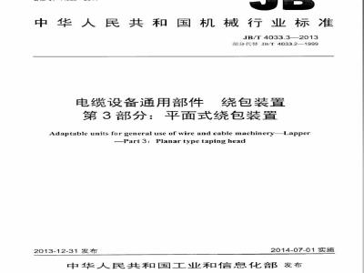 JB/T4033的本部分规定了平面式绕包装置的型式尺小和技术要求。JB/T4033.3—2013