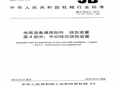 IB/T4033的本部分规定了半切线式绕包装置的型式尺小和技术要求。JB/T4033.4—2013