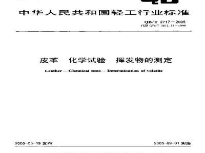 下划文件中的务故通过本标准的引用而成为本标油的条款。凡是注!期的引用文件,其随后所有的整收单(不包括断误的内容)成候订版均不适用于本标举,然而,裁励很据本标准达成协议的各方研究是否可使用这些文性的量新版本,H.是不口期的引用文们,其最薪限本适用丁不标准。QB/T2706一2005丧单化举、物理、机械和色本度试验取样部位(ISO2419:2002,M0D)皮革物理和机城试酸试样的准备和调节(TSO2419:2002,MO)QB/12707—2005