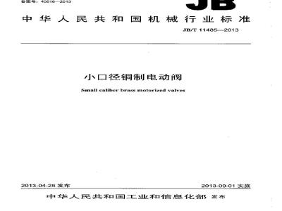 JB/T 11485-2013 小口径铜制电动阀