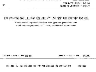 预拌混凝土绿色生产及管理技术规程Technical specification far green productionand management af ready-mixed concreteJGJ/T 328 -2014