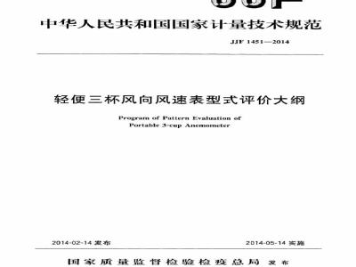 JJF 1451-2014 轻便三杯风向风速表型式评价大纲