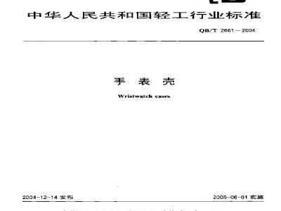 本标准规定了以金属材质为原材料的手表壳部件(以下简称表壳)的技术要求、试验方法、检验规则和标志、包装、运输、贮存。本标准适用于一般用途的金属表壳。不适用于潜水表等其他特殊用途的表壳,非金属材质表壳亦可参照使用。 QB/T 2661-2004 手表壳 QB/T2661-2004 标准下载解压密码:www.bzxz.net