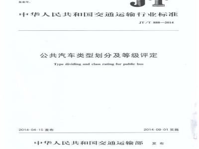 本标准规定了公共汽车类型、等级划分及评定内容、规则和要求。JT/T888—2014
