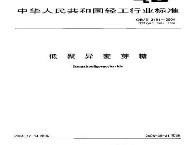 原标准三24K0f=发布:2001实。原标推中点感定了1M0-50型产品,中于低聚异支半拥在张国发展列是新换代校,而H前各牛产厂家部衣牛产M-90型产量,共产品质的要求比50型有很大程必的促,用也更广泛。内此,需要原标准加以修订、增加对型产品的科应要求,M心台至是低聚异左萃糖的中要技术指标:因此,其测定方法空美重要。因际上调带采用宝效激料色错HPT()双注法进测定,恒方法不能体现出韧背对山质趾的影响,而单扎法可以很好池反应因赫摘的响。还比,不次修计用除了原标准中的懋款指标,专患到我国的国情,将单柱法作为件载法,双柱泌放到阴来中,作为资料性附求,牛参考,以痹一下夕产品质量进行比对,谢萄潜转苷萨尽本毒的原轴材料之一,原标准家布时,没有他萄树转苷的相关标准,无然正硫半价酶的质量,因比:在谢录中给出了确的定义测定方法,以供参号,QB2525一2001食品添加剂g萄转行酵3行业诉准已于2001年发布实施,闪此,本次修计取消了原刚来A的内容。1范围