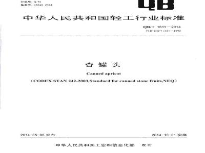 QB/T 1611-2014 杏罐头