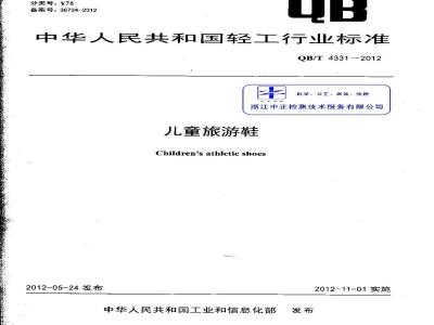 婴幼儿旅游鞋infants'athletic shoes鞋号不人于170mm,供3周岁以下婴幼儿穿用的旅游鞋。QB/T 4331—2012