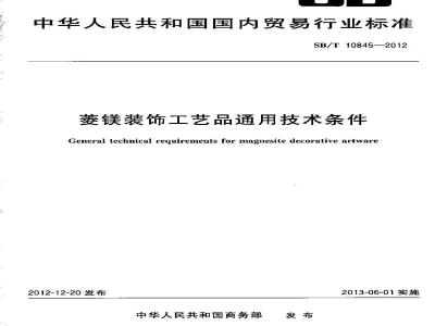 本标准按照GB/T1.1—2009给出的规则起草。本标准由中华人民共和国商务部提出并归口。本标推负责起草单位:漳州市庆铭工艺品有限公司、中国菱镁行业协会。SB/T10845--2012