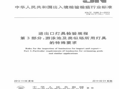 《进出口灯具检验规程第3部分:游泳池及类似场所用灯具的特殊要求》是进出口游泳池及类似场所用灯具检验的工作依据,对进出口游泳池及类似场所用灯具的检验起到指导和规范作用。随着我国加人世界贸易组织(WTO)和中华人民共和国进出口商品检验法》的修订,进出口商品检验工作模式发生了很大的变化,为适应形势和变化·国家检验检疫主管部门组织建立了检验检疫标准体系。