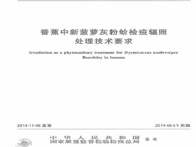 中文名称:香蕉中新菠萝灰粉蚧检疫辐照处理技术要求