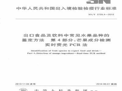 SN/T 3729.4-2013 出口食品及饮料中常见水果品种的鉴定方法 第4部分芒果成分检测 实时荧光PCR法