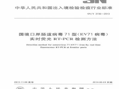 SN/T 3736-2013 国境口岸肠道病毒71型(EV71病毒)实时荧光RT-PCR检测方法