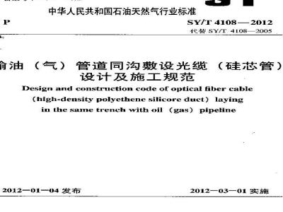 中文名称:输油(气)管道同沟敷设光缆(硅芯管)设计及施工规范
