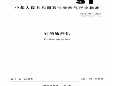 第1部分:标准的结构和编写》给出的规则本标准代替SY/T5376—2005《石油通井机》与SY/T5376—2005相比,主要变化如下:删除已经废止的标准SY/T5202~-2004.SY/T5025和GB14761.6—1993的引用:一增加4.3.4中游车大钩、天车的基本参数:增加4.1,5.2.19中的技术内容:修改3.6.4.3.6.5.1.+,5.2.1、5.2.25.2.3,5.2.4.5.2.5,5.2.6.5.2.7、5.2.8.5.2.9.5.2.11,5.2.14,5.2.15,5.2.16.5.3,1.1.2、5.3.1.1.6,5.3.2.5.3.3.1.11,5.3,3.2.5.3.+.5.3.4.1.5.3.4.3.5.3.4.4、5.3.5,5.3.6.5.3.7.2.5.3.9.1.5.3.9.3,5,3.9.+.5.3.10,6.1.1,6.2.7.2,6.3.1,6.3.2,6.3.8和6.3.9部分技术内容;