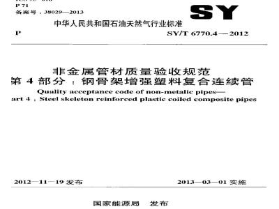 第4部分:钢骨架增强塑料复合连续管Quality acceptance codc of non-metalic pipes-Part 4 : Stecl skeleton reinforced plastic coiled composite pipesSY/T 6770.4..2012