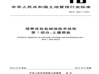 TD/T1043《暗管改良盐碱地技术规程》共分为两个部分:第1部分:土壤调查;