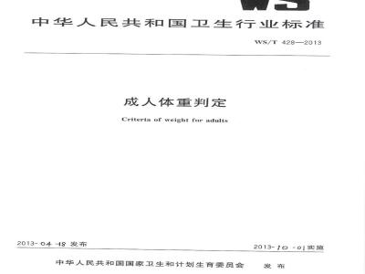 本标准规定了成人体重的判定、测量条件和测定方法本标准适用于成人(18岁及以上)超重和肥胖及中心型肥胖的判定,可用于流行病学筛查和临床初步诊断,但不适用于某些特殊人群,如运动员、孕产妇等。规范性引用文件