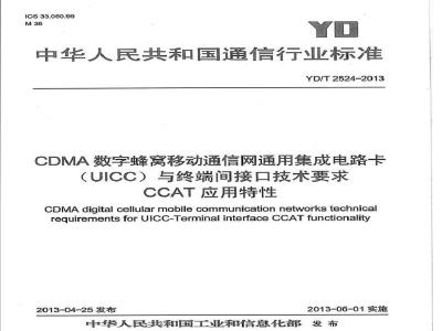 CDMA digital cellular mobile communication networks technicalrequirementsforUICC-TerminalinterfaceCCATfunctionality2013-04-25发布