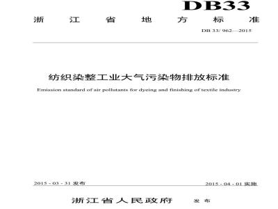 DB33 962-2015 纺织染整工业大气污染物排放标准