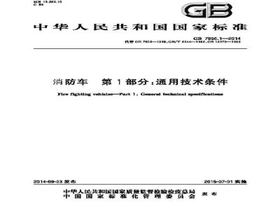 GB7956的本部分的第5章为强制性的,其余为推荐性的。GB7956(消防车3分为以下部分:第1部分:通用技术条件: