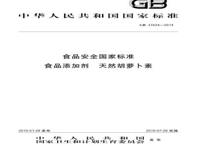 GB 31624-2014 食品安全国家标准 食品添加剂 天然胡萝卜素