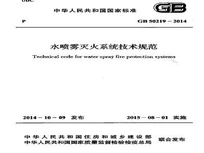 住房城乡建设部关干发布国家标准《水喷雾灭火系统技术规范》的公告现批雅&水喷穿灭火系统技术规范》为国家标雅,绵母为GB50219一2014,自2015年8月1日起实施。其中,第3.1.2、3. 1. 3、3.2. 3, 4.0.2 (1)、8. 4.11、9. 0. 1 条 (数) 为强制性条文,必须严格执行。原国家标准《永喷雾灭火系统设计规范》GB50219·-1995同时废止。
