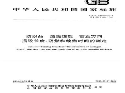 GB/T 5455-2014 纺织品 燃烧性能 垂直方向 损毁长度阴燃和续燃时间的测定