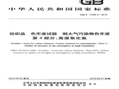 GB/T11039《纺织品色牢度试验耐大气污染物色牢度》包括以下部分:第1部分:氧化氮;