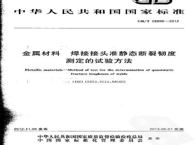 GB/T 28896-2012 金属材料 焊接接头准静态断裂韧度测定的试验方法