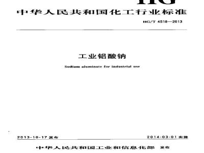 本标准规定了工业铝酸钠的分型,要求,试验方法,检验规则,标志、标签,包装,存、运输和安全。本标准适用丁工业铝酸钠。该产品主要用作钛白粉生产过程中表面包膜的处理堵漏剂、水泥速凝剂、造纸行业的填充剂:另外铅酸钠在石油化工,制药、橡胶,印染、钢铁,纺织,催化剂生产中也有较广泛的底用,