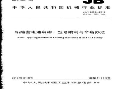JB/T 2599-2012 铅酸蓄电池名称、型号编制与命名办法
