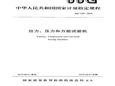 本规程是对JJG139一1999《拉力、压力和万能试验机》和JJG757一2008《非金属拉力、压力和万能试验机》的修订,并将两个规程的内容进行了合并。本规程与JJG1391999和JJG1572008和比,主要技术变化如下:-适用范周:该规程包含了JJG139一1999楚义的试验机,还包括了适用原JJG157一2008的小负荷材料试验机、微小力值试验机,以及皮革、纸张、橡胶、塑料、纤维等试验机。由丁JJG475-2008《电子万能试验机》适用丁具备闭环控制功能的电子拉力(压力)试验机的检楚,因此具有闭坏控制功能的电子拉力(压万)试验机的检定按照JJG475一2008(电子万能试验机》进行,电液伺服拉力(压力)试验机按照JJG1063一2010《电液何服方能试验机》进行。本规程适用于述开环控制的试验机(已制定专门规程的试验机除外)。