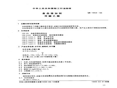 本标准规定了丙酸乙醋的技术要求、试验方法和检验规则等内容。本标准适用于以丙酸与乙醉为原料经化学合成制得的丙酸乙醋。该产品主要用于调配食用香精。 QB 1954-1994 食品添加剂 丙酸乙酯 QB1954-1994 标准下载解压密码:www.bzxz.net