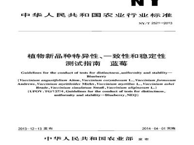 NY/T 2521-2013 植物新品种特异性、一致性和稳定性测试指南 蓝莓