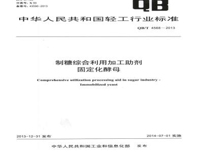 制糖综合利用加工助剂固定化酵母QB/T4568-2013