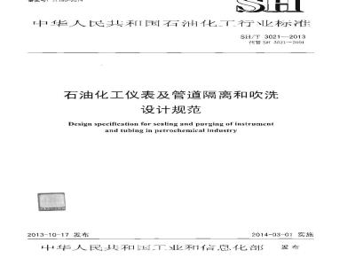 SH/T 3021-2013 石油化工仪表及管道隔离和吹洗设计规范