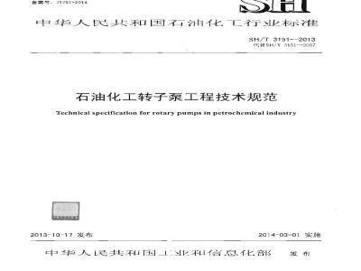 SH/T 3151-2013 石油化工转子泵工程技术规范