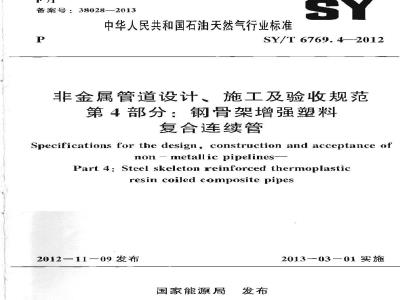 SY/T 6769.4-2012 非金属管道设计施工及验收规范 第4部分 钢骨架增强塑料复合连续管