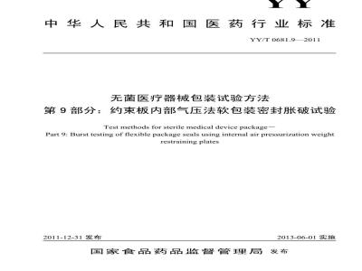 YY/T 0681.9-2011 无菌医疗器械包装试验方法 第9部分 约束板内部气压法软包装密封胀破试验