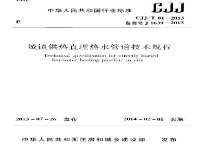 城镇供热直埋热水管道技术规程Technical specification for dircctly buriedhol watcr hcaling pipeline: in cityCJJ/T 81 - 2013