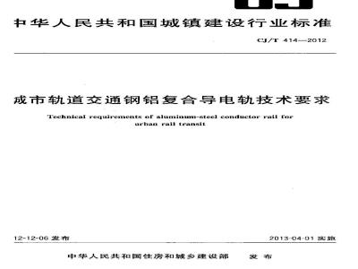 城市轨道交通钢铝复合导电轨技术要求CJ/T 414—2012