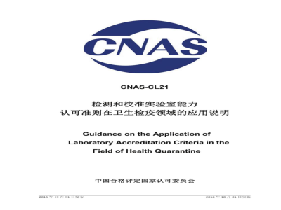 CNAS-CL21:2015 检测和校准实验室能力认可准则在卫生检疫领域的应用说明