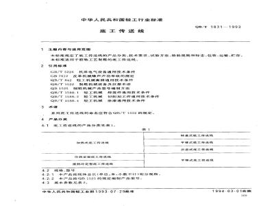 本标准规定了底工传送线的产品分类、技术要求、试验方法、检验规则和标志、包装、运输、贮存本标准适用于胶粘工艺制鞋的底工传送线。 QB/T 1831-1993 底工传送线 QB/T1831-1993 标准下载解压密码:www.bzxz.net