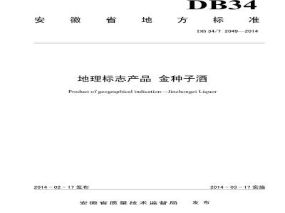 DB34/T 2049-2014 地理标志产品 金种子酒