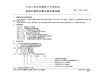 本标准由轻工业部技术装备司提出。本标准由全国乳品机械标准化中心归口。本标推由上海前卫机械厂负责起草。本标推主要起草人王无妨、施连官。自本标准实施之日起,原轻工业部发布的专业标准ZB/TY99026—1989《单效外循环列管式真空蒸发器》作废。