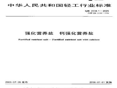 QB2238强化营并盐3系列标准分对五项:QR2238.1驱化曾养盛低懂化营养盐;QB2238.2强化骨养盐樟整化营举盐:-OB2238.3强化营养盐强化代荞盐:QF2238.4化营养盐软强化营养盐:--QB2238.5海化片养盐核黄意业化营养盐。半标准火QB2238录列标范第一项。本标准的第3章为制性的,其余为推毒性的。iKAoNiKAca=